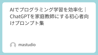 AIでプログラミング学習を効率化する方法を初心者向けに解説。ChatGPTを家庭教師のように活用し、コードの書き方・エラー解決・概念理解を加速するプロンプト集を紹介します。Python・HTML・JavaScriptの学習に使えるテンプレート付き実践ガイドです。