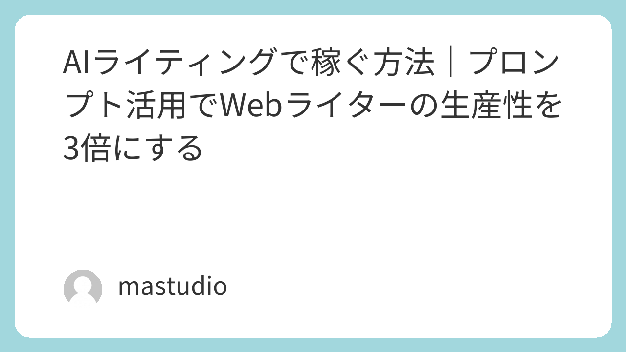 「構成込み」で受注できるライターは単価が1.5〜2倍になります。AIで構成案を素早く作れるスキルは、まさにこの武器になります。