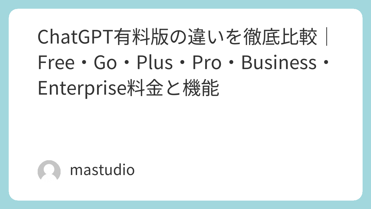 - 全6プラン:Free(¥0)・Go(¥1,500)・Plus(¥3,000)・Pro(¥30,000)・Business(¥3,900〜)・Enterprise(要問合せ)