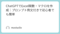 やりたいことを日本語で説明するだけで、適切なExcel関数やVBAマクロのコードを生成してくれます。関数に詳しくなくても高度な集計が可能になります。具体的なプロンプトは「ChatGPTでExcel関数・マクロを作成する方法」をご覧ください。