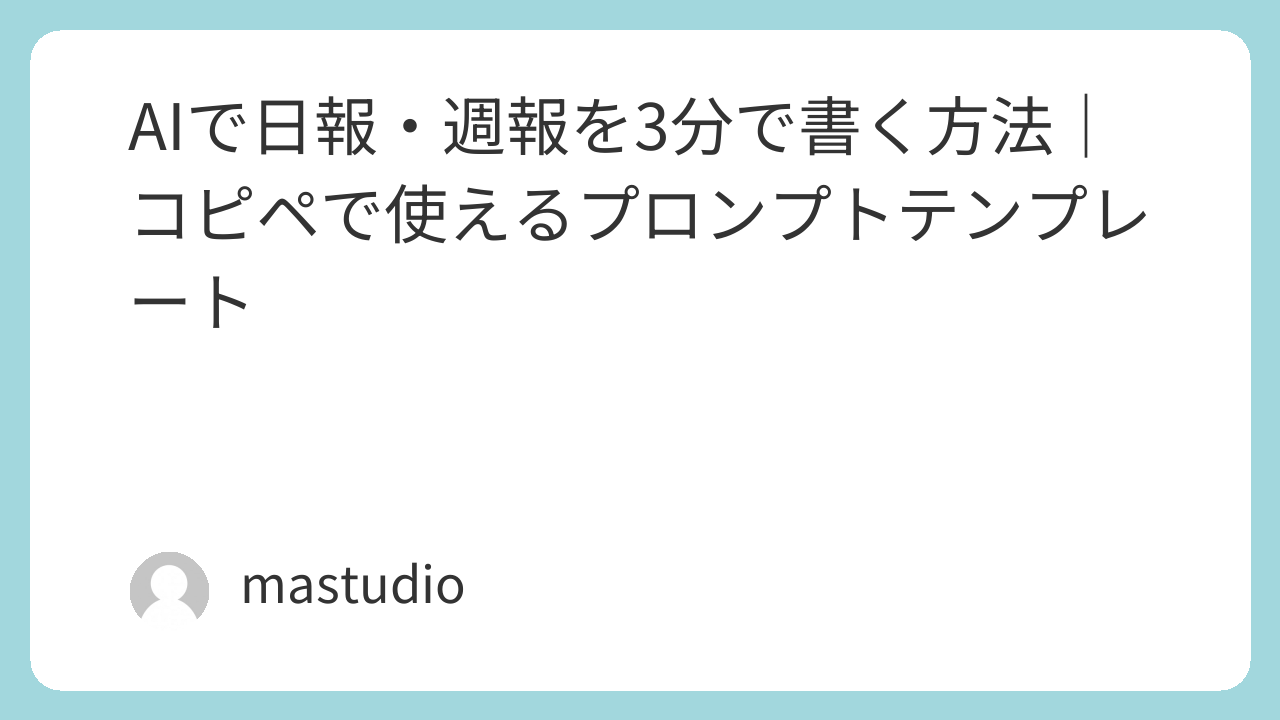 日報・週報は毎日の業務だからこそ、わずかな時短でも年間では大きな効果を生みます。今日からさっそく、業務メモをChatGPTに渡すところから始めてみてください。