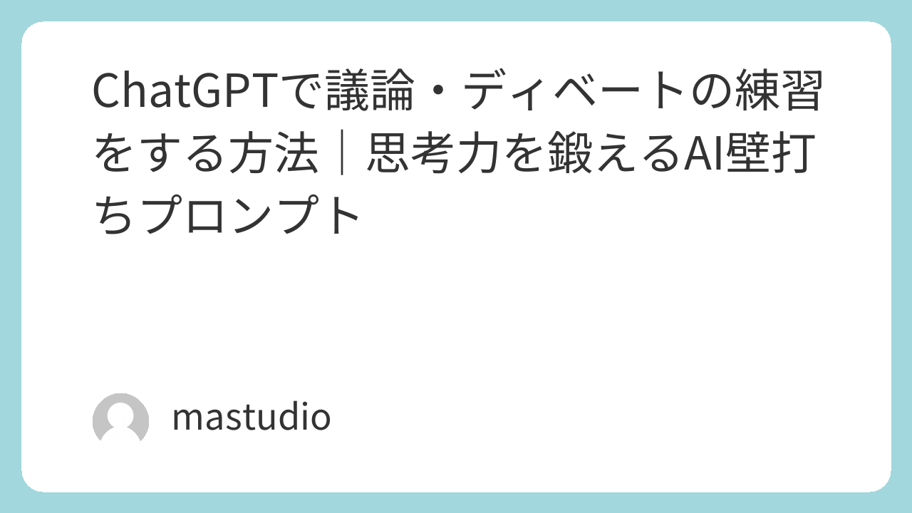 ChatGPTを活用すれば、いつでもどこでも、1人で議論・ディベートの練習ができます。AIに反対意見を出させ、自分の主張を鍛え直す「壁打ち」は、思考力を飛躍的に向上させます。