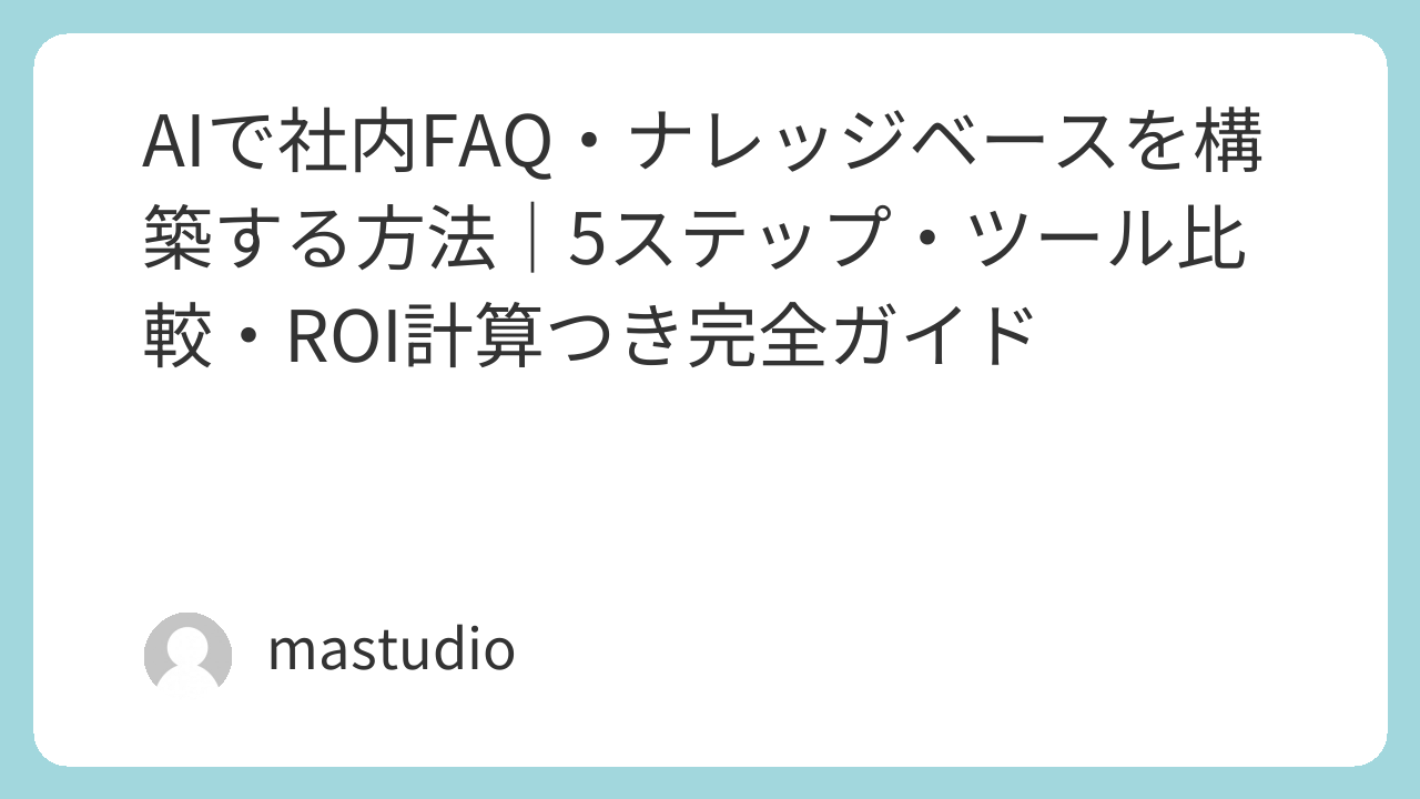 AIで社内FAQ・ナレッジベースを構築する方法|5ステップ・ツール比較・ROI計算つき完全ガイド