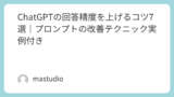 プロンプトの基本はChatGPTに上手に指示を出す方法、精度向上はChatGPTの回答精度を上げるコツ7選もあわせてご覧ください。その他のプロンプト活用法はAIプロンプト活用ブログでもご紹介しています。