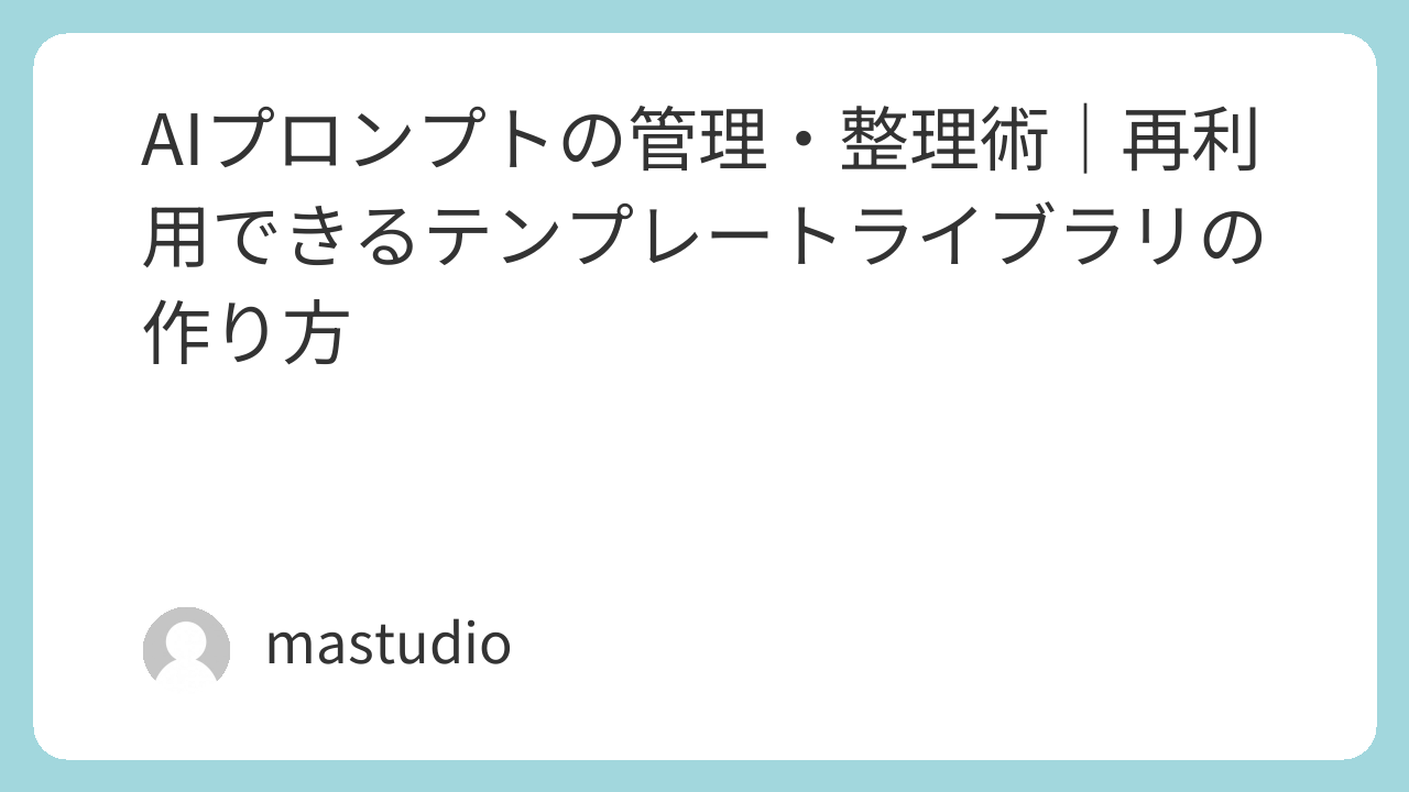この記事では、プロンプトを効率的に管理・整理し、誰でも再利用できるテンプレートライブラリを構築する方法を紹介します。個人のメモ管理からチーム全体での共有まで、段階別に解説します。