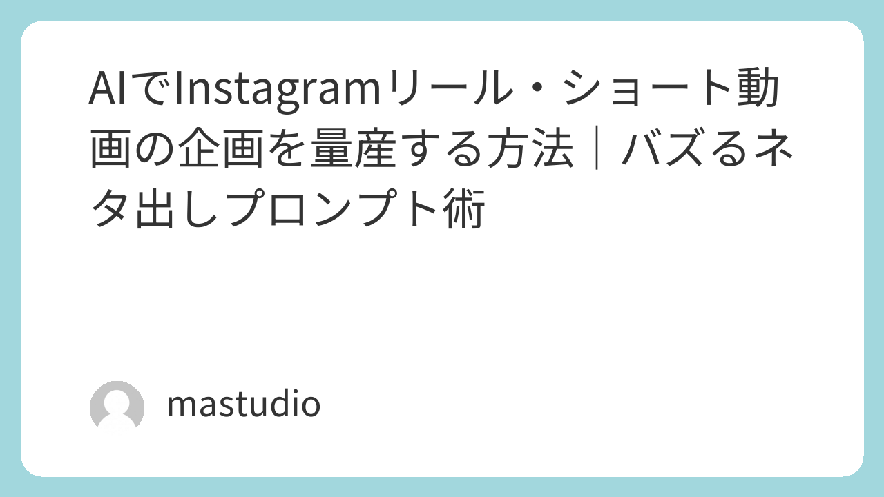 AIでInstagramリール・ショート動画の企画を量産する方法|バズるネタ出しプロンプト術