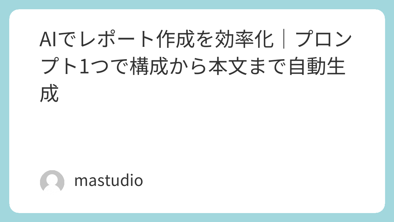 AIでレポート作成を効率化|プロンプト1つで構成から本文まで自動生成