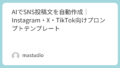 実践のコツ:ChatGPTで1ヶ月分の投稿文を一括生成し、プラットフォームごとに最適化する方法が効率的です。「Instagram向け」「X(旧Twitter)向け」などプラットフォームを指定したプロンプトを使いこなせると、作業スピードが格段に上がります。媒体別のプロンプトテンプレートはAIでSNS投稿文を自動作成する方法でまとめています。