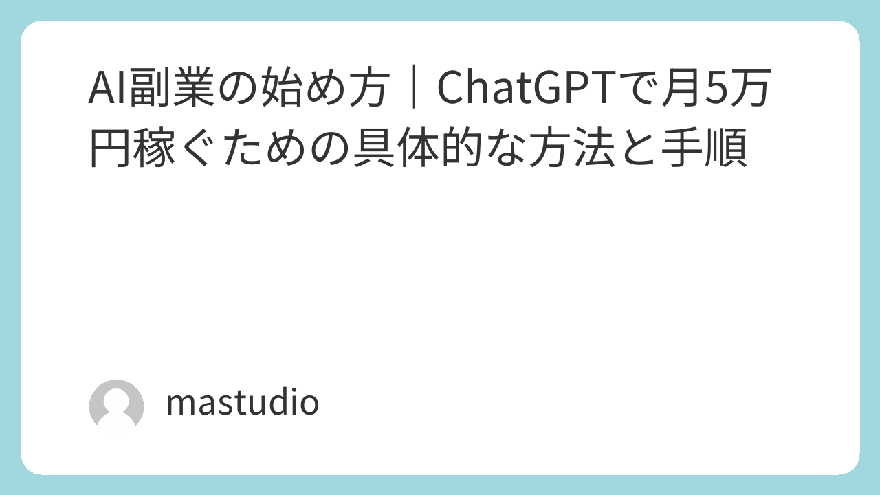 - 高い生産性:AIを活用することで、従来の副業よりも短時間で高品質な成果物を作れる。時給換算の効率が格段に良い